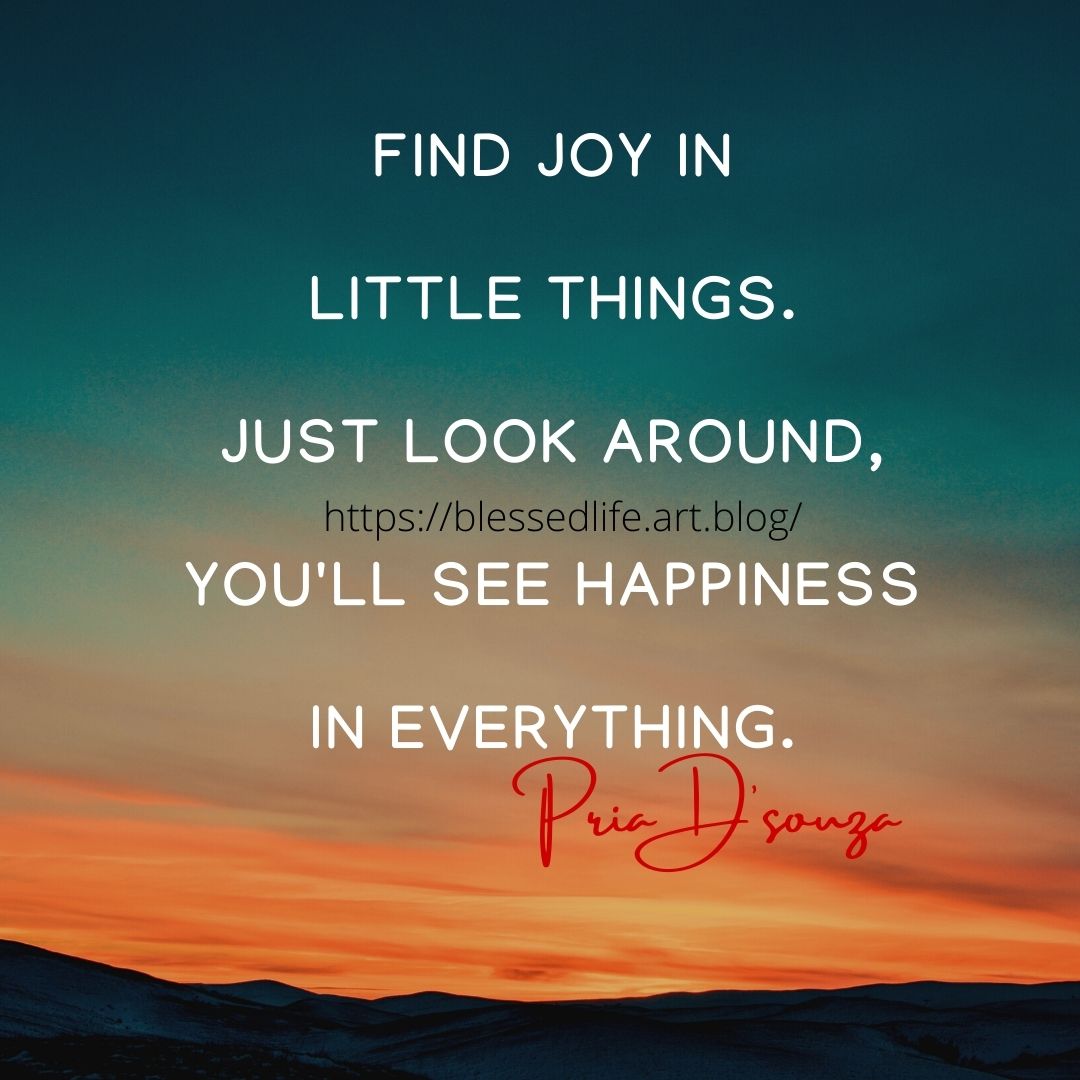 Find joy in little things Blessed soul quotes 5th Sep 2021 1 Minute linkedin Pinterest instagram email Share on LinkedIn (Opens in new window) LinkedIn Share on Pinterest (Opens in new window) Pinterest Share on WhatsApp (Opens in new window) WhatsApp Like Loading... Related Published by Blessed soul I am a Life Coach.My redeemer is my Jesus. View all posts by Blessed soul Published 5th Sep 2021